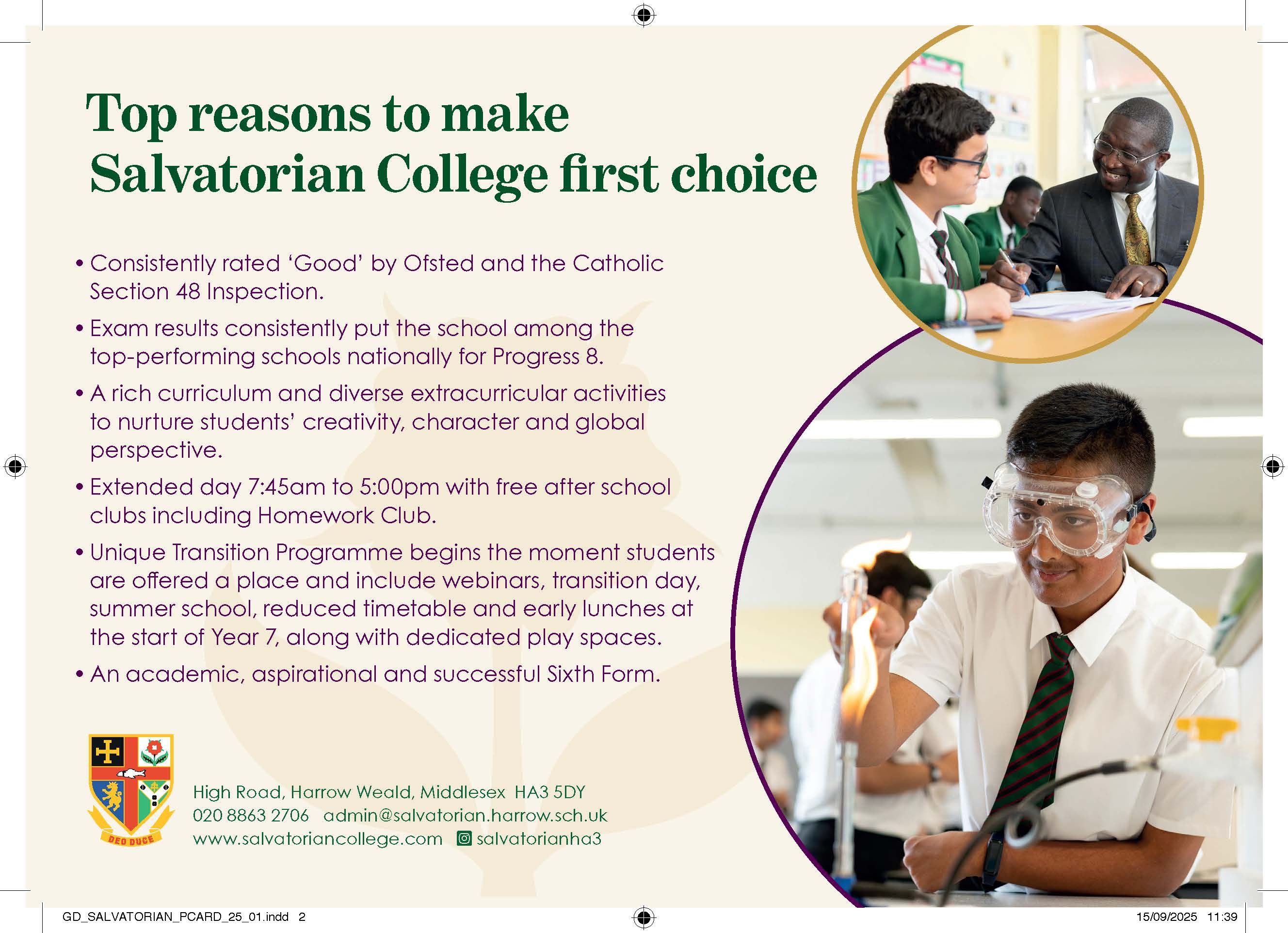 The Governors of Salvatorian College are consulting on the proposed changes to the school’s admissions policy from September 2027. The consultation will commence on Friday 14th November and comments will be able to be made for a minimum of 42 days. Responses to this consultation should be made in writing to admissions@salvatorian.harrow.sch.uk The consultation will close on Monday 5th January.